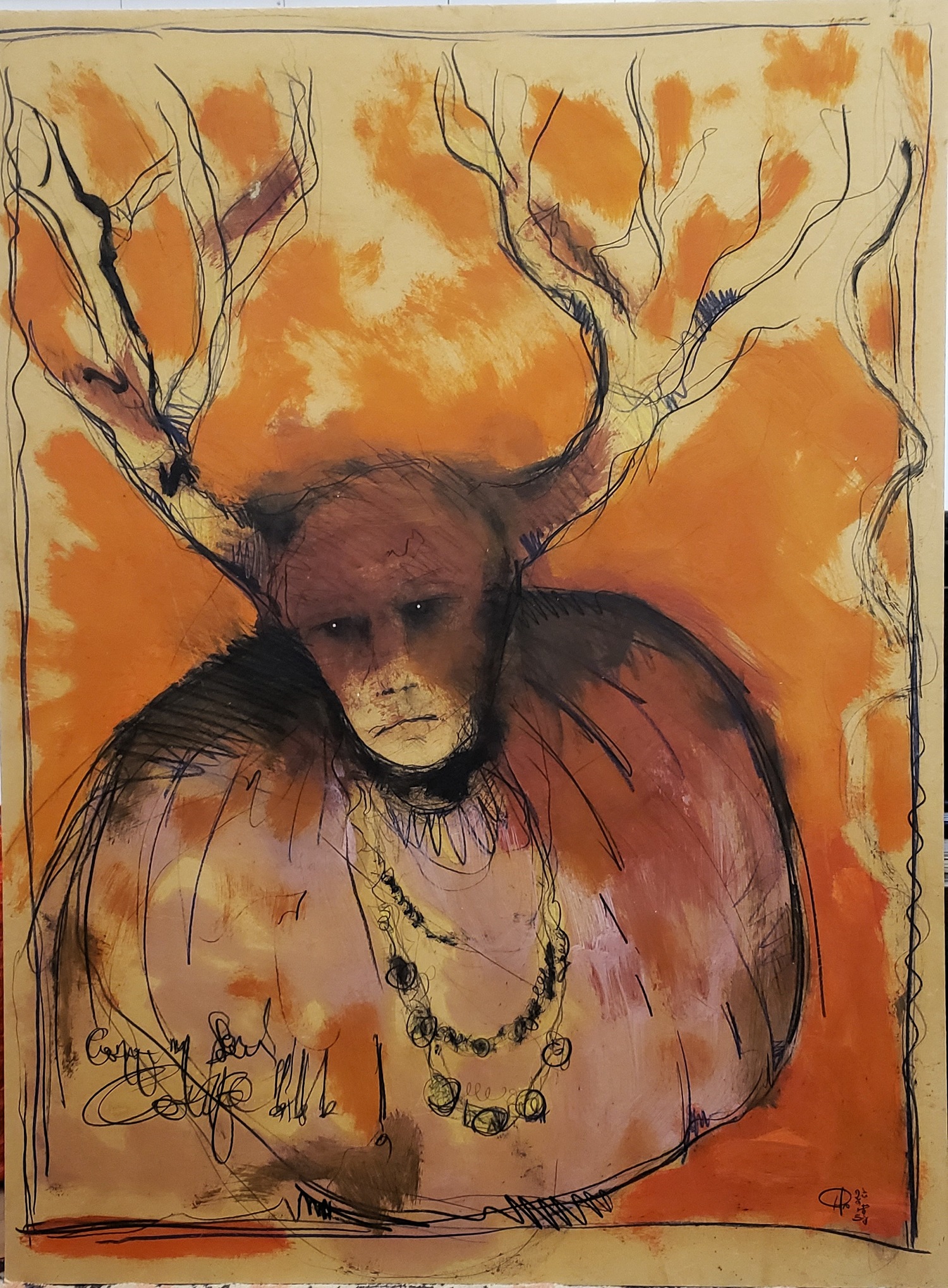 aubade aux bois 98x74cms 2015 huile sur kraft – thierrylo.com