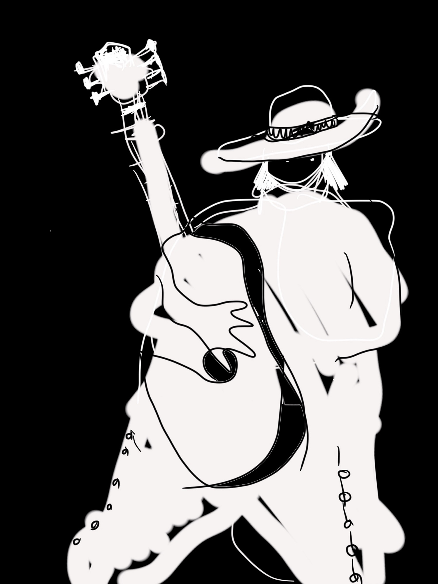 BLACK AND WHITE GUITAR PLAYER
