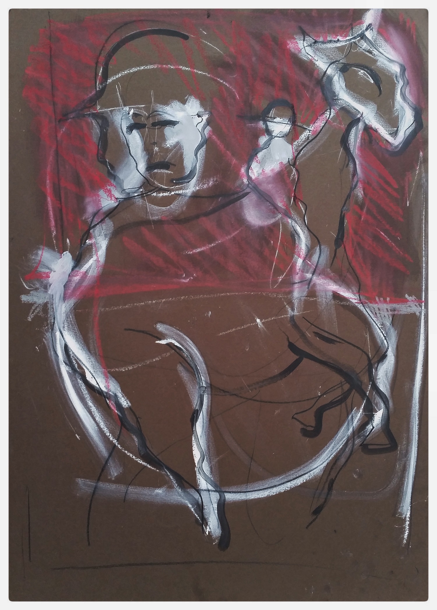Il y a une vingtaine de mes interprétations (réalisées entre septembre et novembre 2019 à Gravina In Puglia, Campofelice Di Roccella et Letojanni), de la peinture intitulée « So we were / L’ Amazzone, de Pordenone MONTANARI . Voici donc l’interprétation numéro 2. Tout comme dans la version numéro 1, dans laquelle je reprends tous les éléments de l’original (voir sur page ouverture de site) avec des disproportions qui s’accentuent.